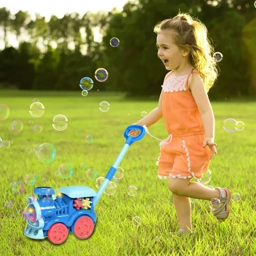Cu functii multiple, precum generarea de baloane, efecte sonore si luminoase, precum si posibilitatea de a fi trasa sau impinsa, aceasta jucarie ofera o experienta distractiva si educativa.