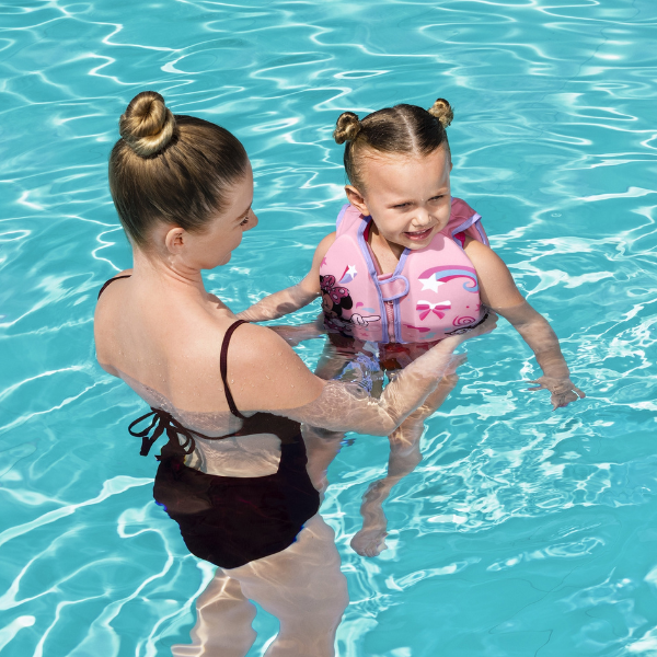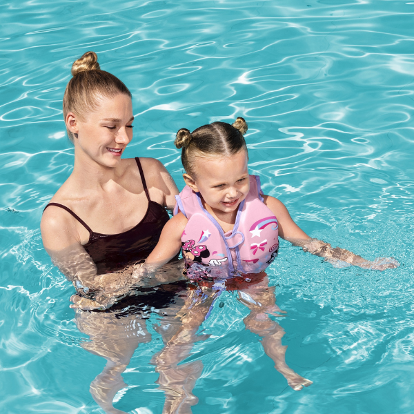 Vesta de inot Bestway Minnie 9101B este perfecta pentru copiii care incep sa inoate singuri. Fiind potrivita pentru copii a caror greutate este cuprinsa intre 11 si 19 kg, aceasta ofera siguranta si sustinere in timpul sesiunilor de inot. Confectionata din poliester si avand o tesatura durabila si prevazuta cu pernute din spuma incorporate, aceasta vesta asigura confort si flotabilitate optima.