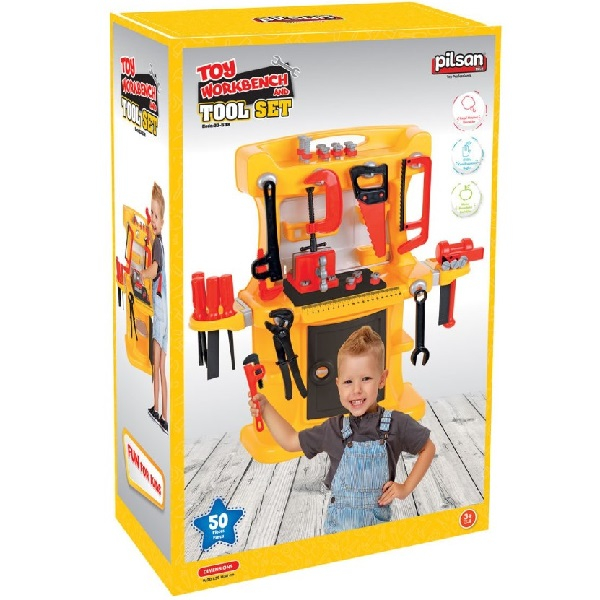 Setul de scule din 50 de piese este potrivit pentru copiii peste 3 ani.