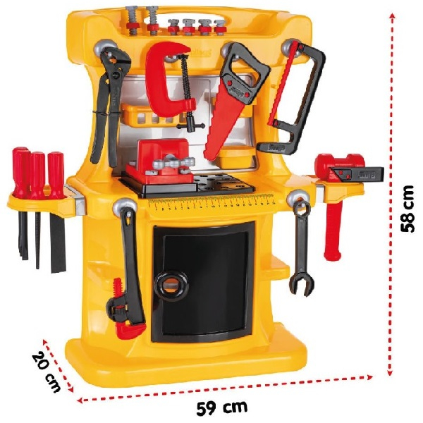 • se transformă într-o masă comodă pentru joc, atașând sculele de ea.