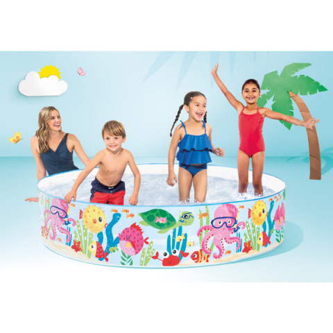 Piscina gonflabilă pentru copii "Lumea Subacvatică" 183x38 cm, 958 l, pentru copii de la 3 ani (Intex 56452) Această piscină gonflabilă pentru copii este foarte ușor de montat. Tot ce trebuie să faceți este să o scoateți din cutie, să întindeți pereții și să o umpleți cu apă, iar apoi vă puteți bucura de distracție alături de copilul dumneavoastră. Caracteristici: